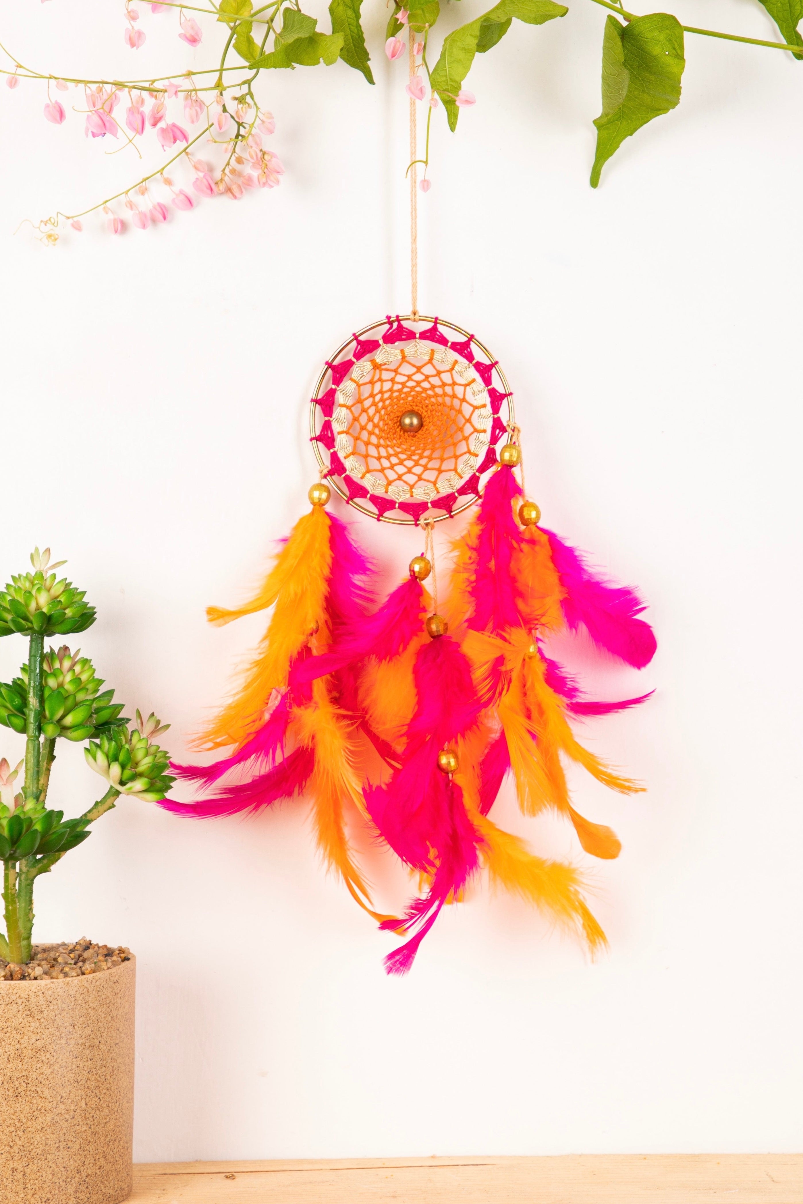 Intricately handwoven Dreamcatchers to cleanse , release and filter energy so only good vibes prevail all around you . Orange and pink come together to enhance power, enthusiasm and courage . All this goodness power packed in our Dreamcatcher perfect for car hangings or cosy corners .