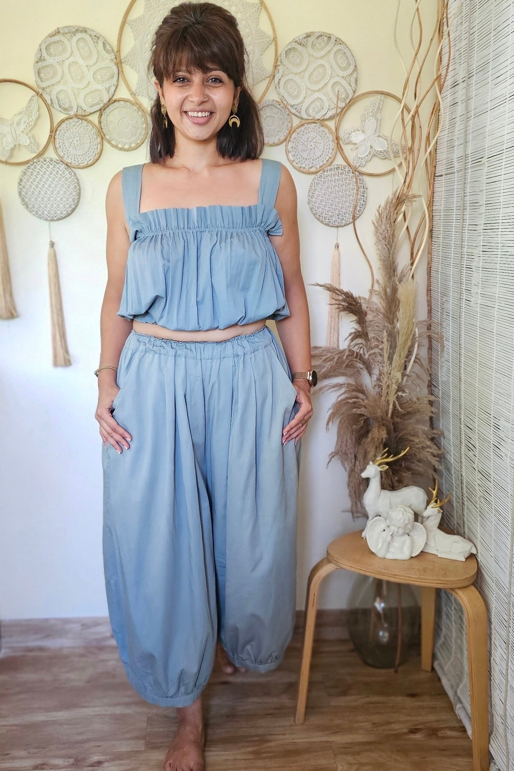 Classic cotton co-ord. Fluff strappy top with wide legged pants for comfy days!