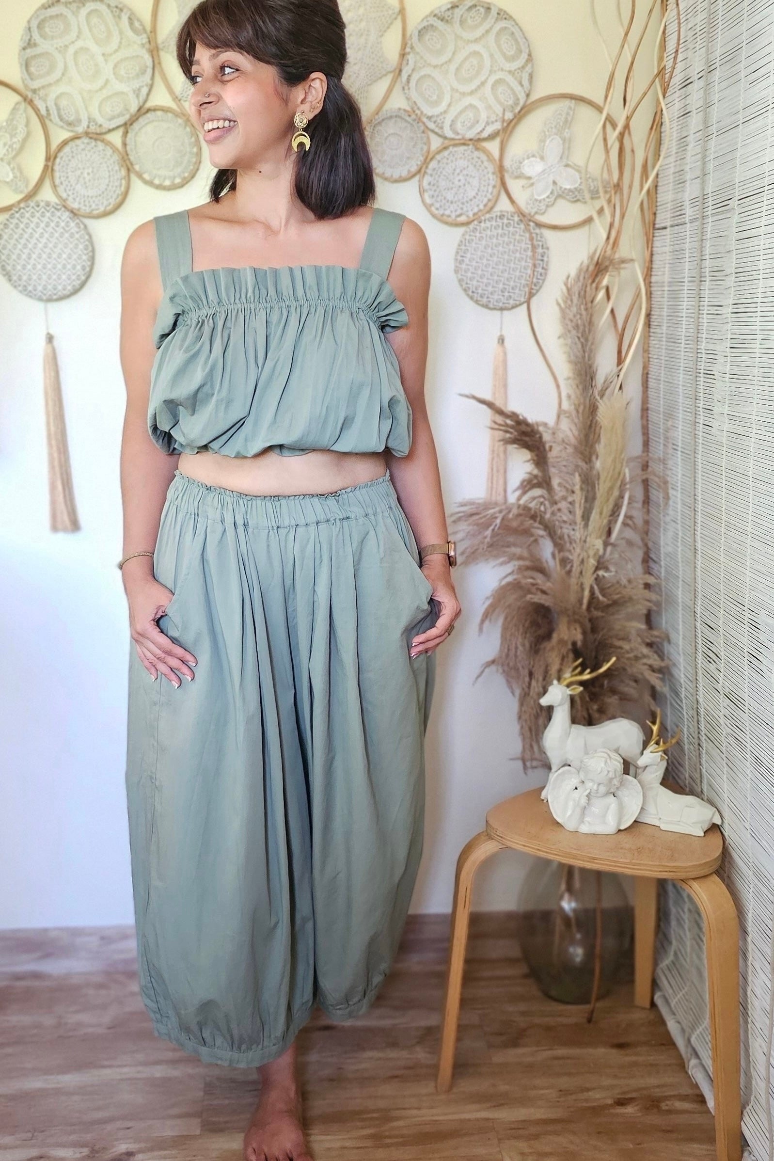 Classic cotton co-ord. Fluff strappy top with wide legged pants for comfy days!