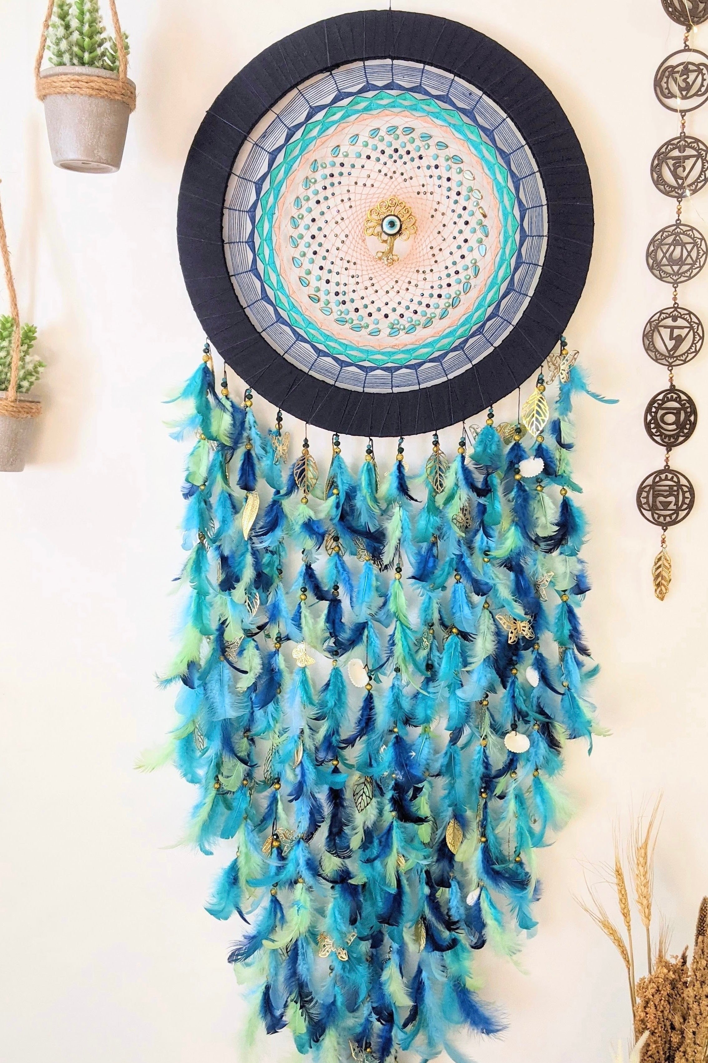 Available on pre-order basis. 7 days time . Intricately handwoven Dreamcatcher embedded with the finest crystal beads to ensure that only goodness surrounds you . With the healing grace of blues - known to release communication blocks and allow creative expression to take place - this stunner is all about ensuring you shine in the most beautiful way possible!