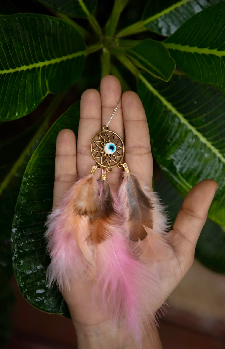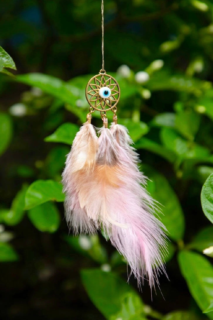 Dream catchers are popularly made in handmade willow hoops or metal rings on which a net or web is handwoven. Dream Catchers come in different colors, styles and sizes. It may also include items like feathers, stones, wind chimes, or beads.