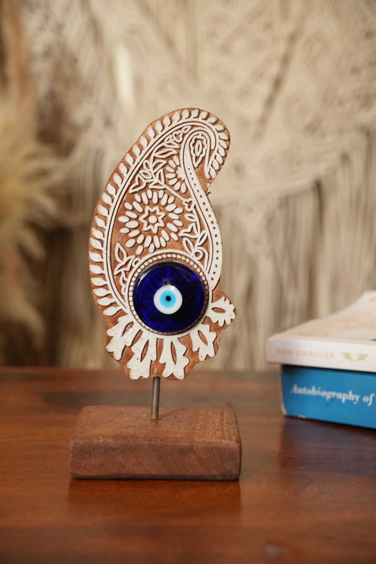 Fusing traditional Indian craft to the popular Paisley -with evil eye to -  to ward off all negative every and keep you protected and ensure you are surrounded by blessings galore .