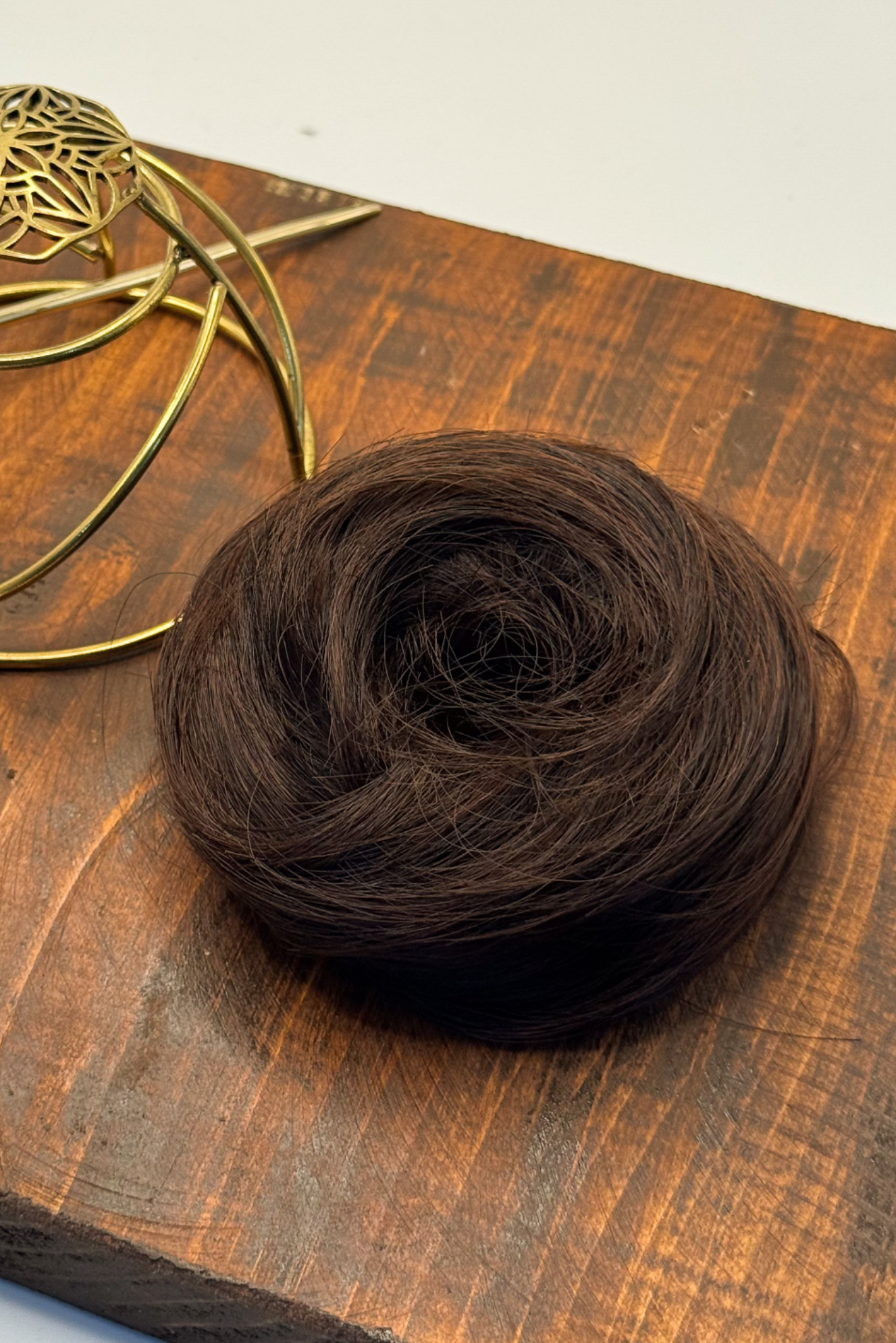 •  Our hair scrunchie(crafted out of human hair) works as a faux bun and is a perfect solution for adding volume to your hair bun. They are simple and easy to wear.