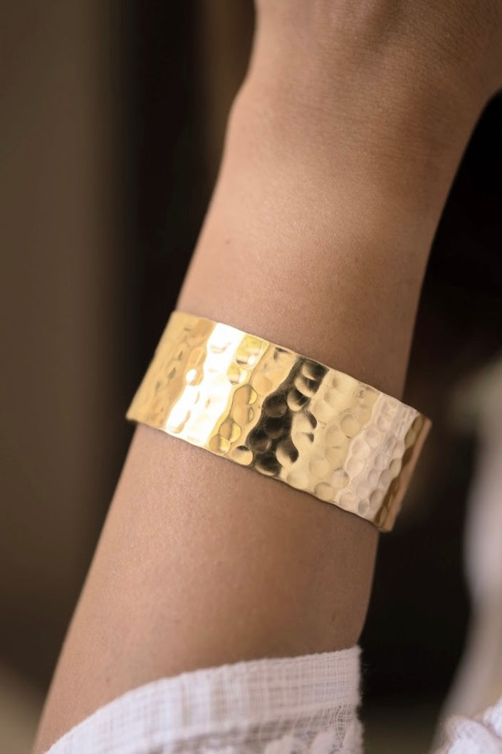 Back openable. Hand beaten metal offers a unique shape and vibe to brass jewellery making it look eclectic and bohemian at the same time. Wear our free size kadha to add magic to your bohemian avatar!
