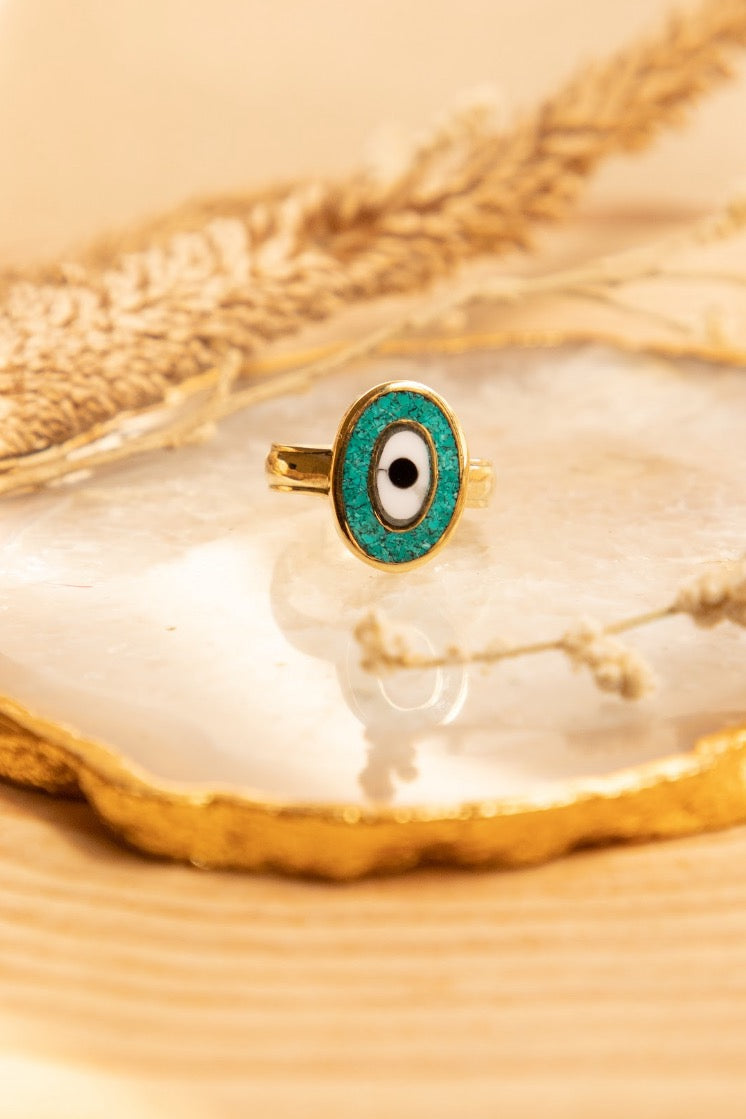 Evil Eye turquoise ring. Adjustable. Size 5-7