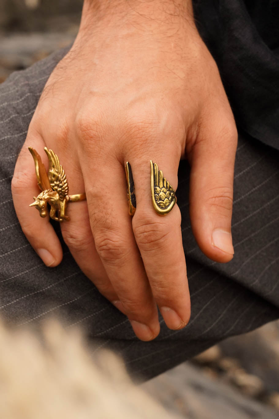 Unicorn mens brass ring. Adjustable. Size 5-7