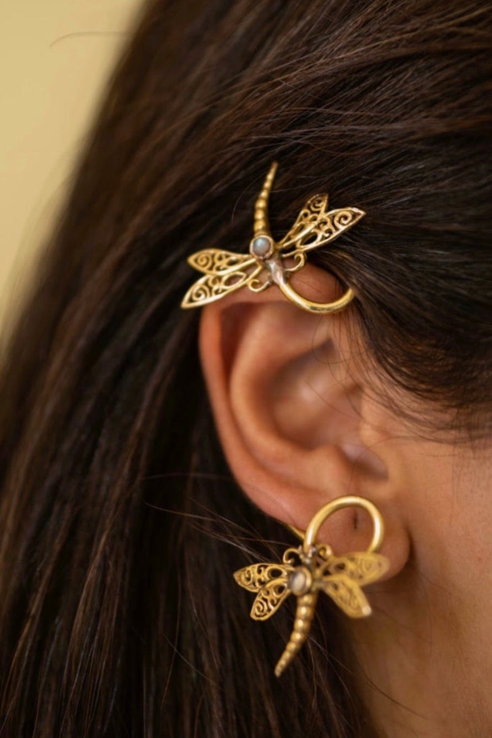 Dragonfly wrap brass earcuff: Pair of 2 pieces.