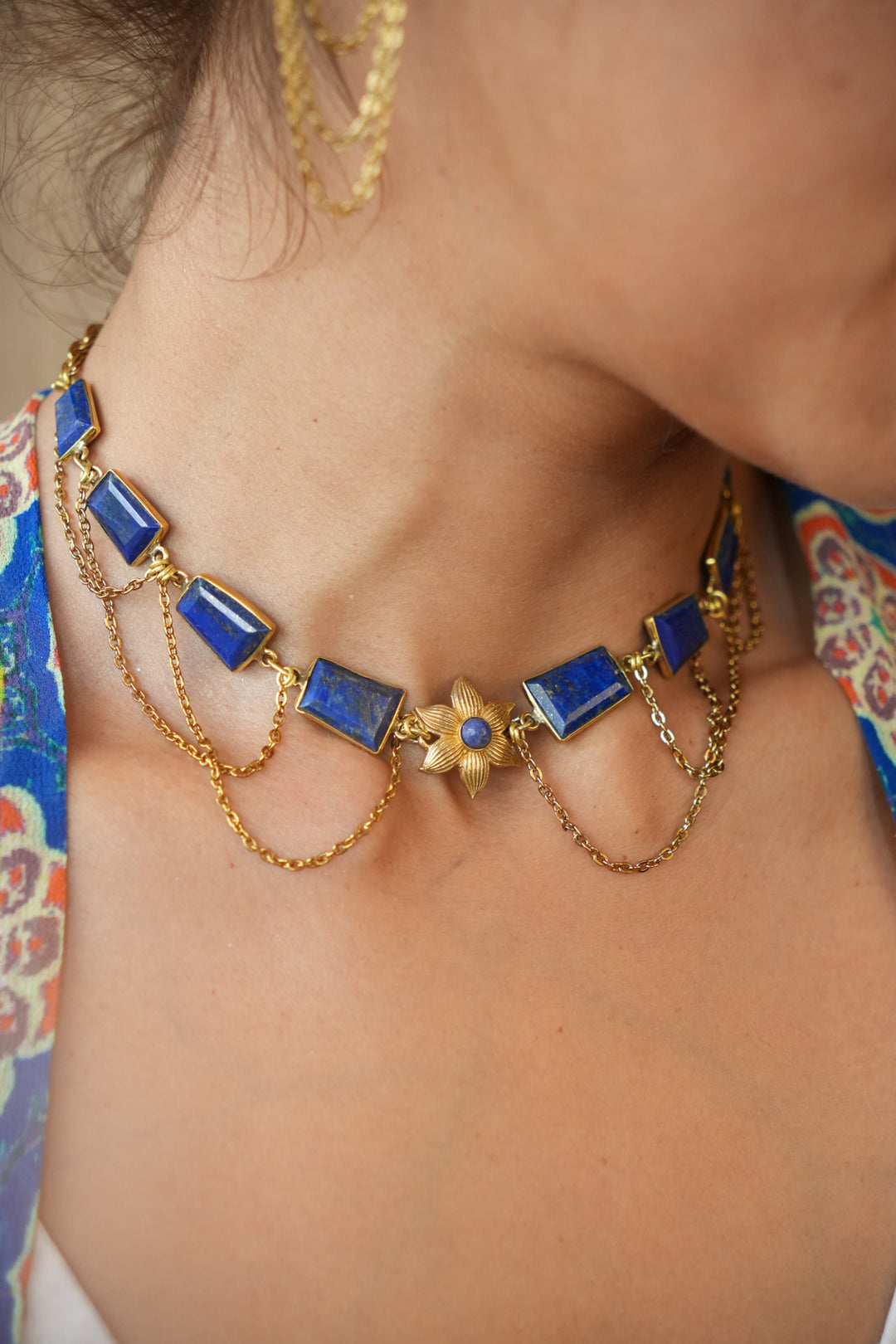 This collection captures the serene beauty of the sea with turquoise, lapis lazuli, and handpicked agates in soothing shades of blue and green. Each piece is crafted in bohemian-style brass, paired with anti-tarnish alloy chains—lightweight, hypoallergenic, and designed to stand out effortlessly.