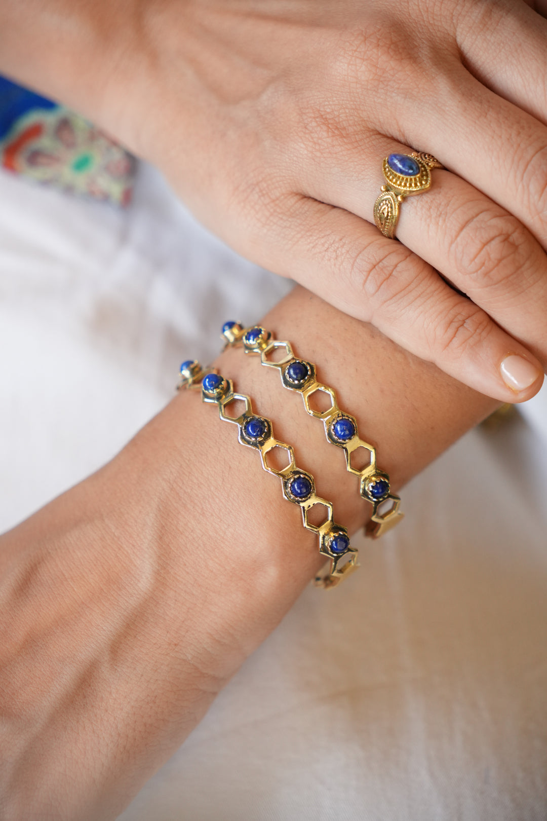 Lapis Vanki Brass Ring. Adjustable Size 5-7