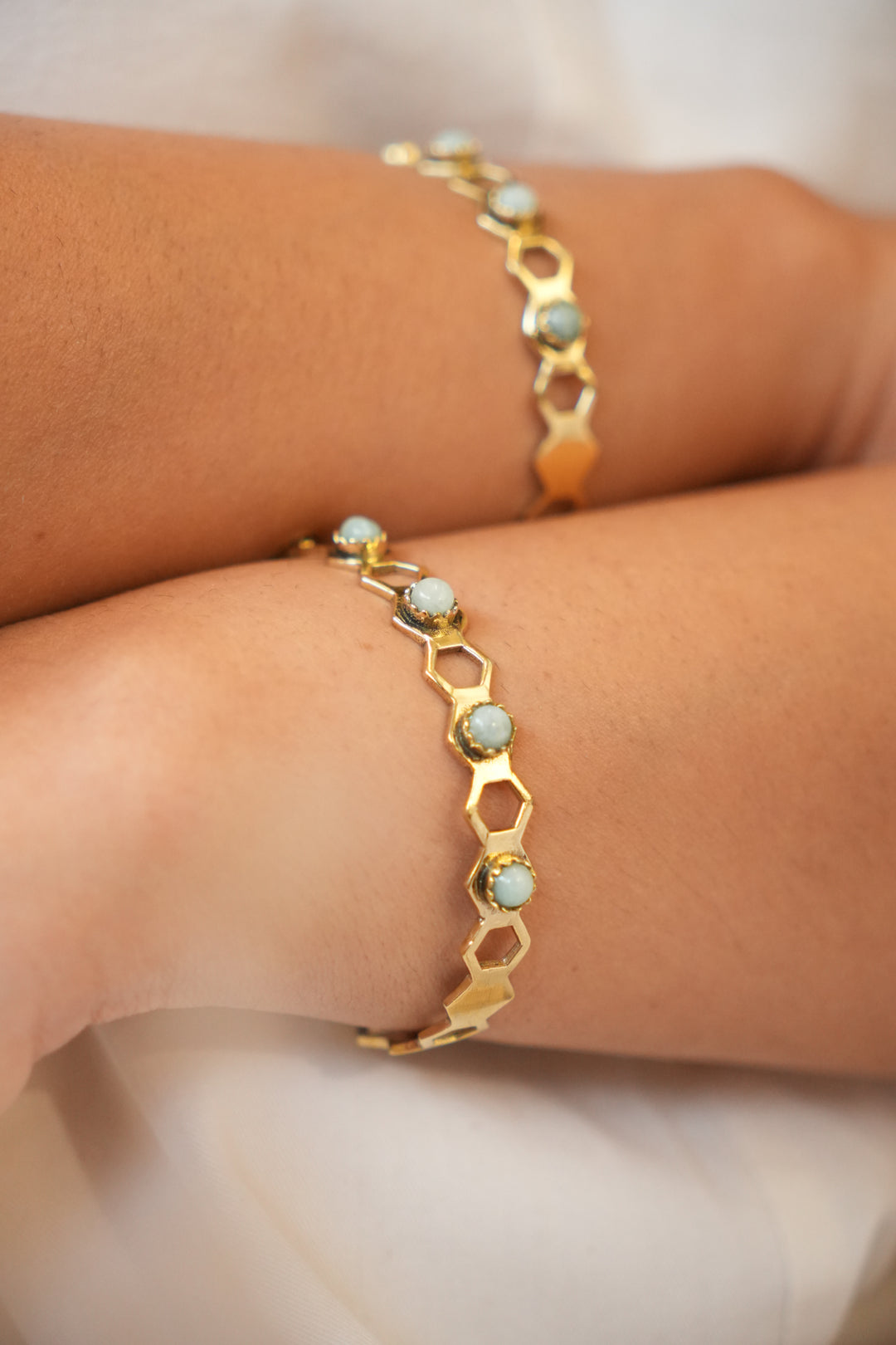 Vanki Brass Ring in green onyx. Adjustable. Size 5-7