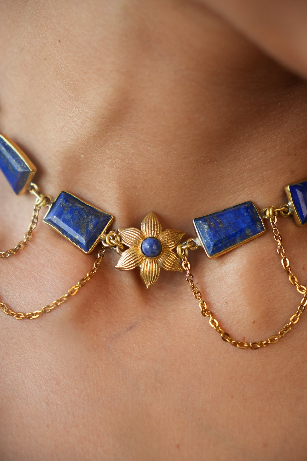 • Features a string of radiant and authentic lapis crystals set pure brass.