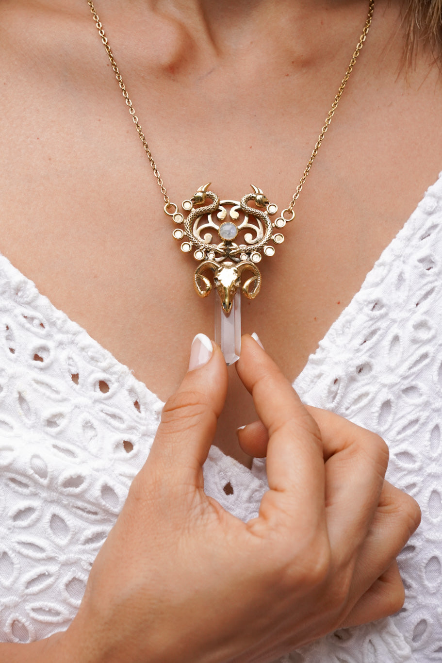 Rising Dragon clear quartz necklace
