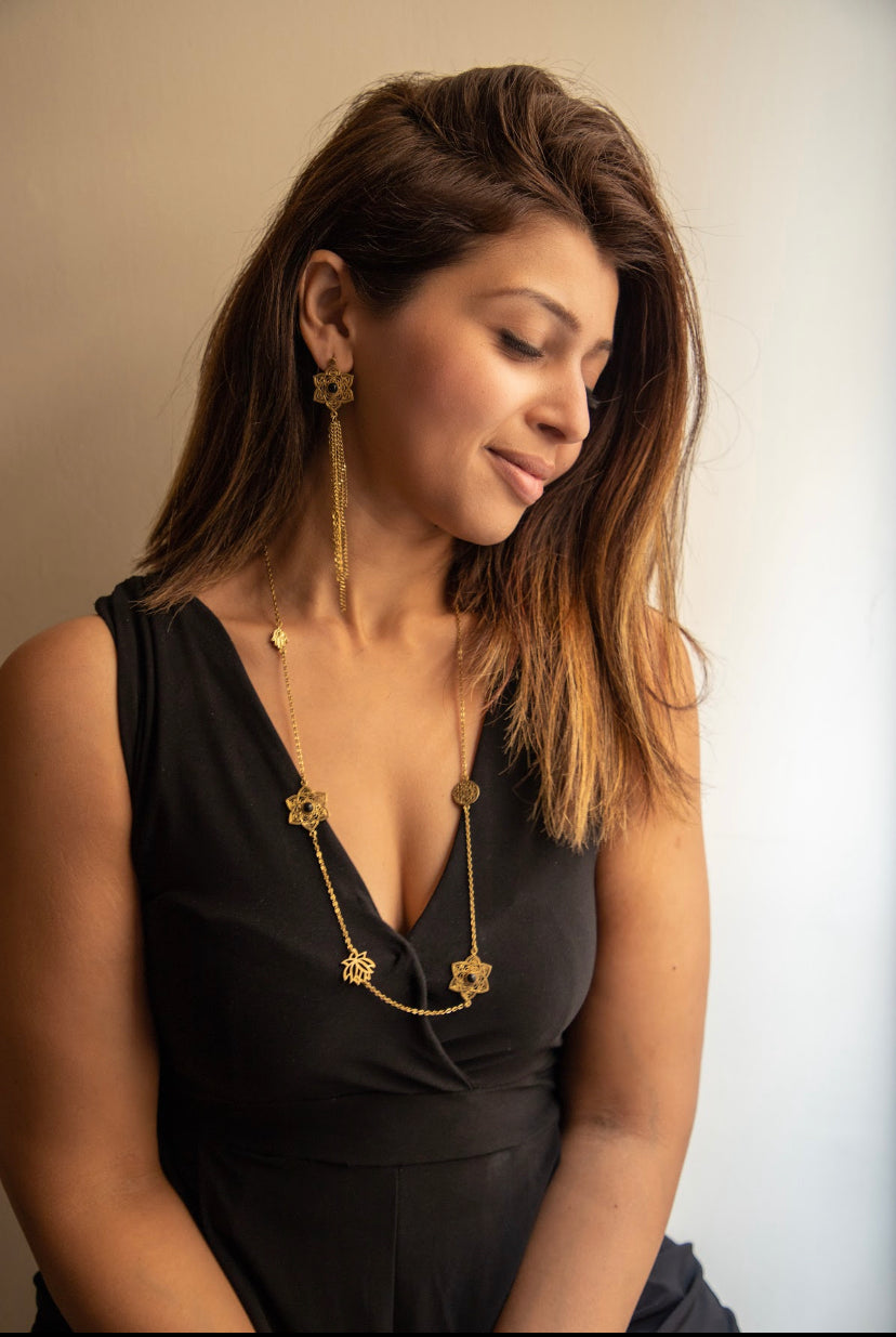 Black Onyx Mandala Long Charm Necklace.