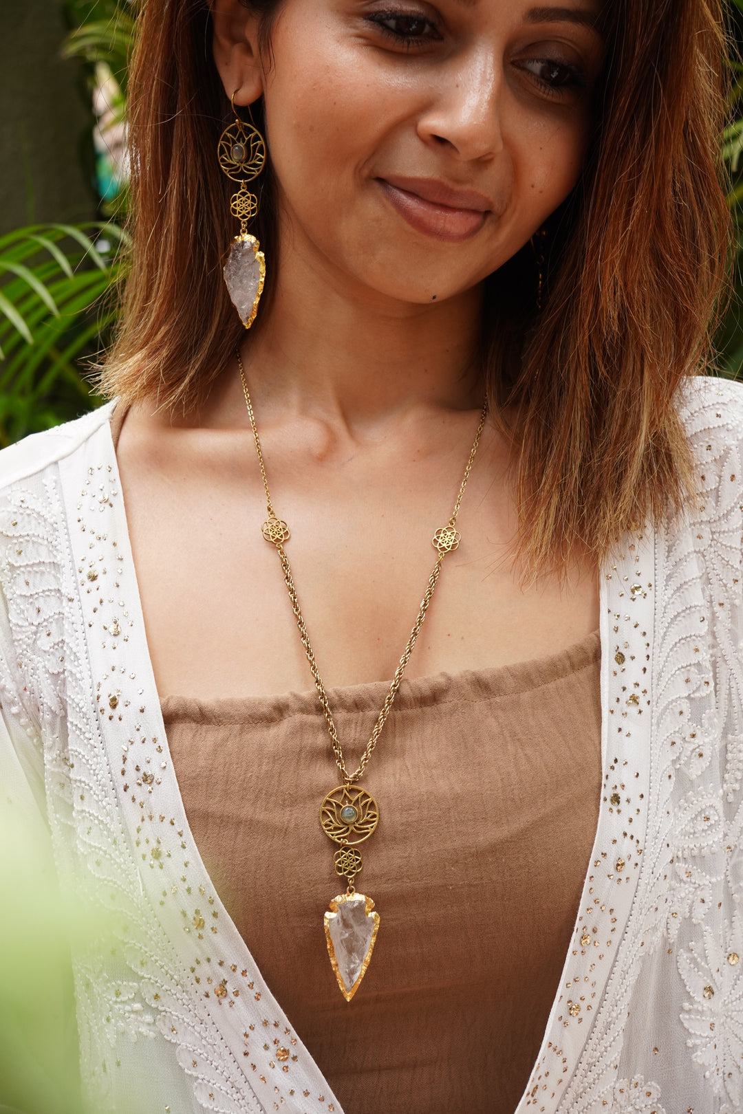 Drops of quartz long necklace