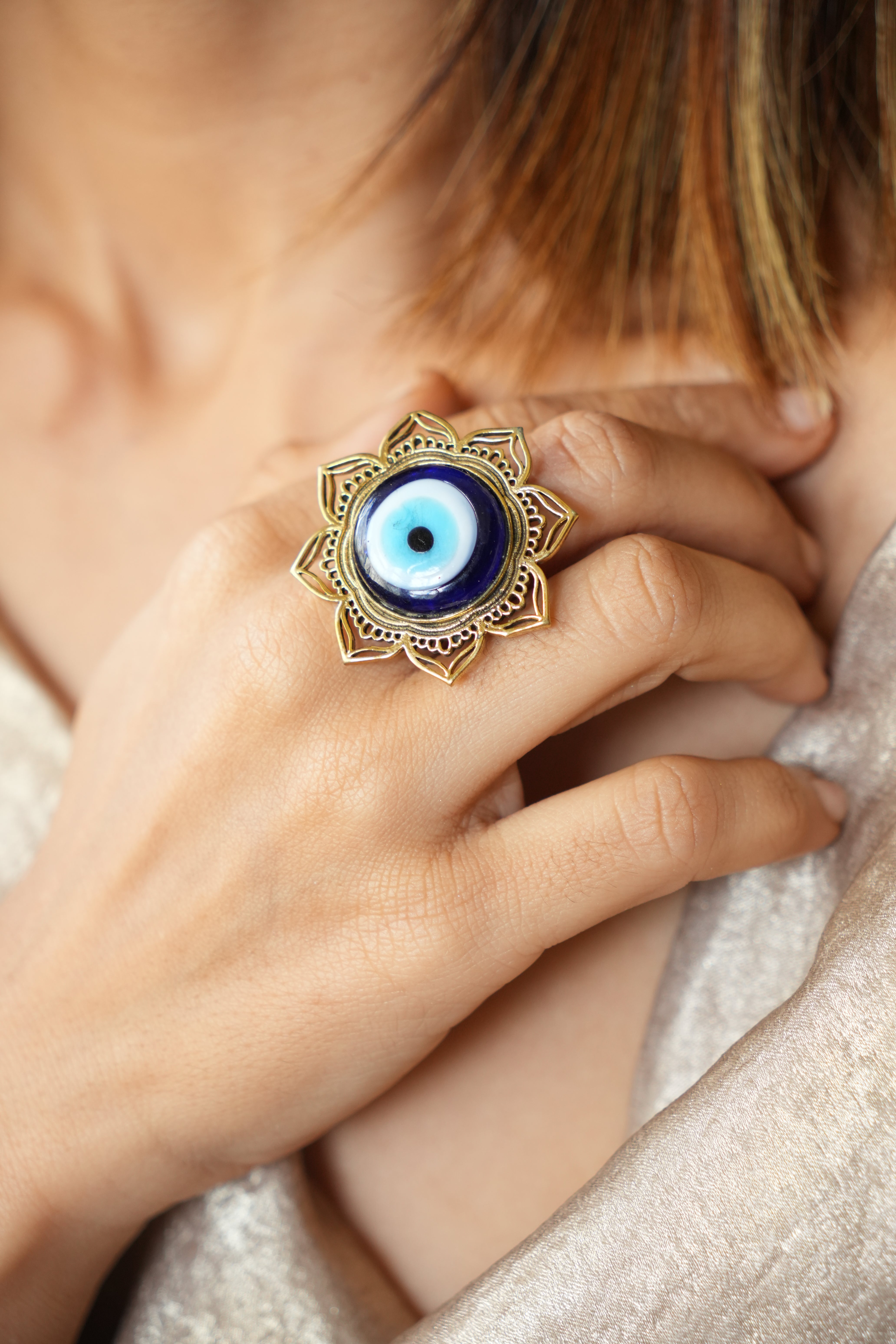 Mandala eye brass ring. Adjustable. Size 5-9.
