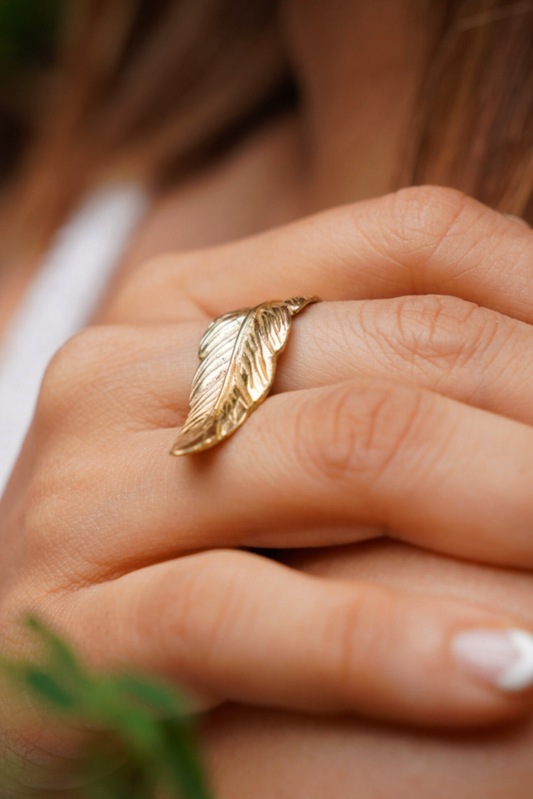 Feather wrap adjustable brass ring. Size 5-7