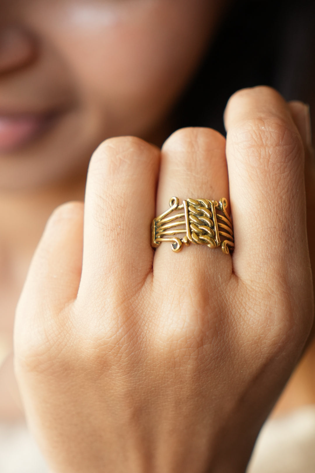 Tree Of Life Adjustable Brass Ring. Size 6-8