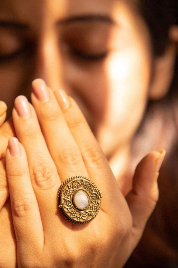 Poison moonstone brass ring. Adjustable. Size 6-8
