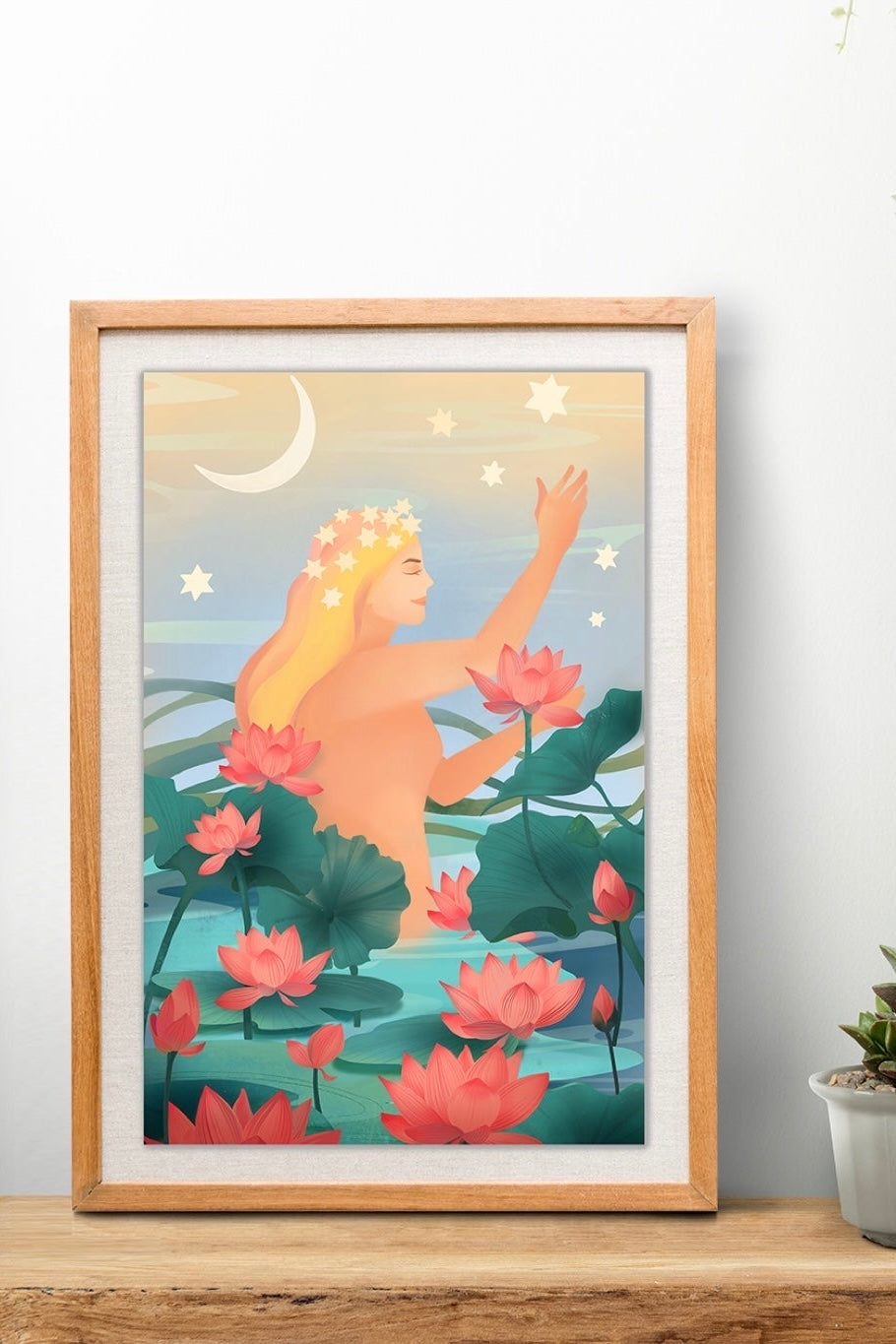 The creativity illustration is inspired by the Osho deck of tarot cards. It embodies the spirit of the divine yin, that expresses herself gracefully and finds meaning and purpose through her creative flow. Bring in this divine energy with our energised artwork.