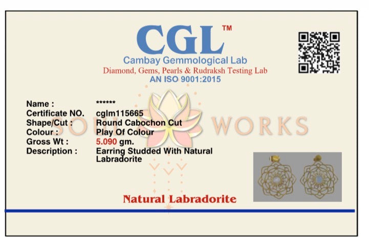 Labradorite Mandala drop brass earrings