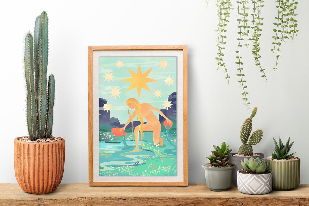 The star illustration is inspired from the major arcana card of the Rider Waite tarot deck. It embodies the spirit of success, abundance and fame . It empowers the spirit of generosity breaking free from stagnation of any kind, allowing the flow of divine harmony to set into rhythm.